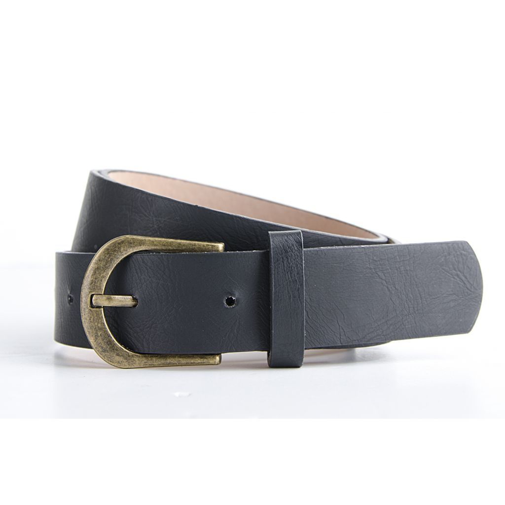 Pænt 3 cm. bredt sort bælte i PU med D-lukning. Bæltet passer godt til f.eks. jeans og bukser.