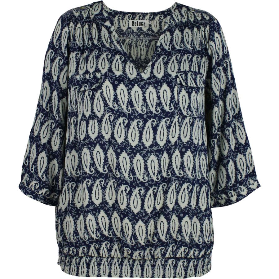Deluca bluse m. blad print (Blå)