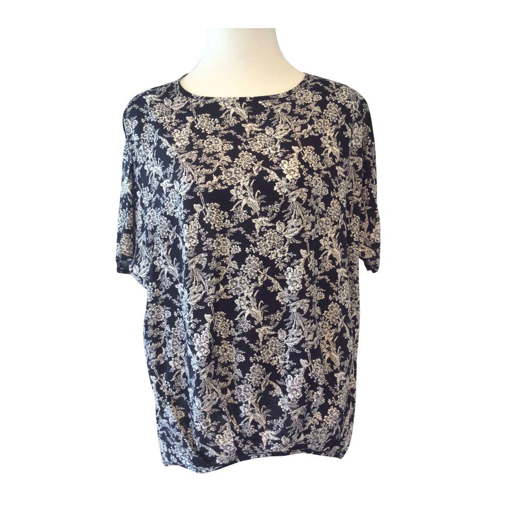 Lækker bluse i en god viskose metervare. Blusen er med korte ærmer og rund halsudskæring. I begge sider af blusen er der små dryp, ligesom ryggen er lidt længere end fronten. Øverst på bagstykket er der en lille lynlås. Lynlåsen kan bruges som en sød effekt, men ønsker man en mere nedringet bluse, så kan man lade lynlåsen stå åben.