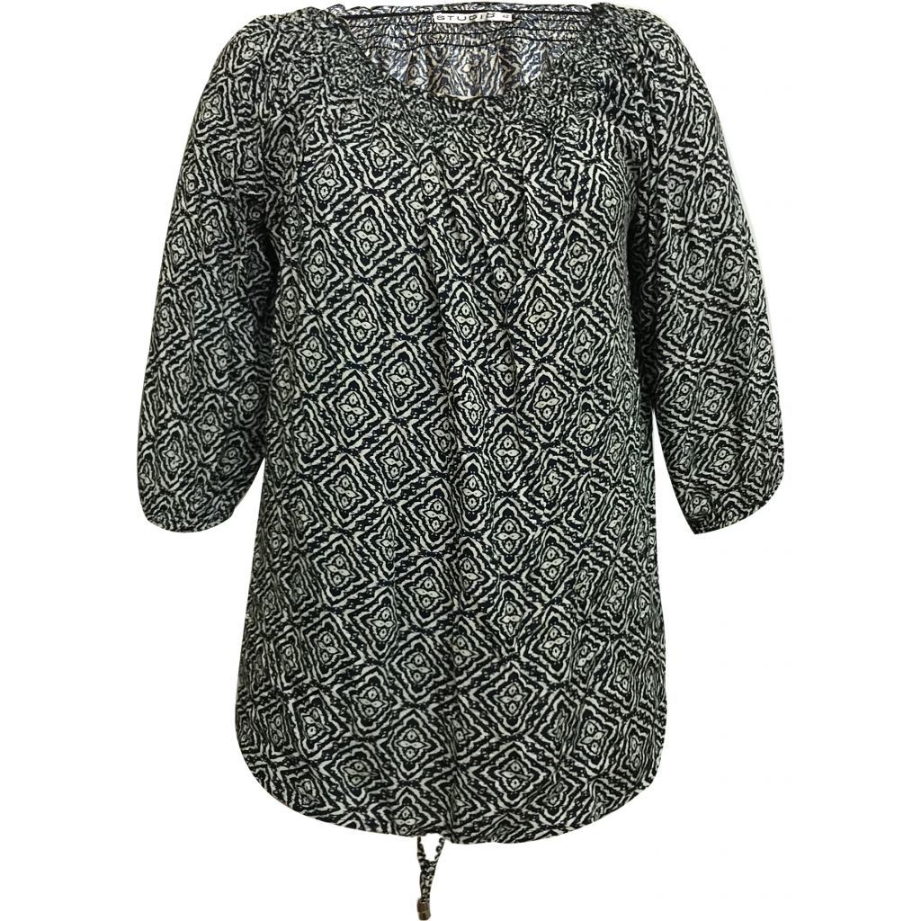Sød bluse i blåt/hvidt print - Studio