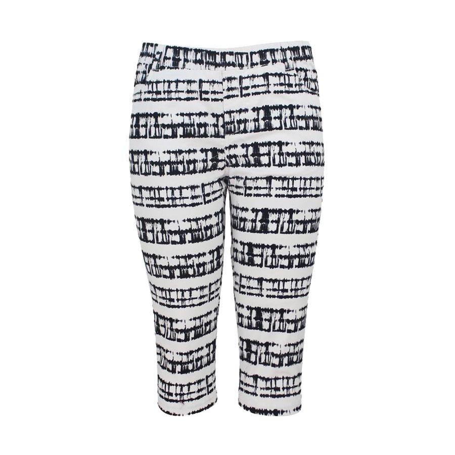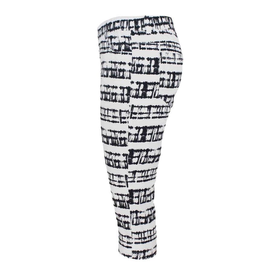 Fede hvide capribukser med sort print. Bukserne er i 97% bomuld og meget bløde og behagelige at have på.