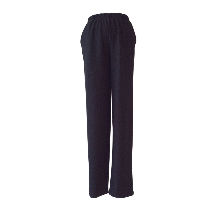Lækker blød buks fra Handberg med masser af vidde. Buksen er løstsiddende, og den er med en bred indsyet elastik i taljen. I begge sider er der en skrå lomme. Buksen er sort, men stoffet gør, at bukserne ser ud som om de er stribet i to forskellige sorte farver.