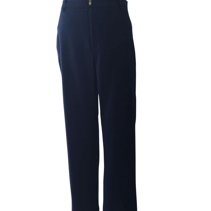 Nydelig navyblå bengalinbuks. Buksen lukkes med en skjult lynlås foran og med en lille knap på indersiden. Rundt i linningen er der smalle bæltestropper, hvis du ønsker at bruge bælte. Buksen er lavet med et lille opslag nederst, der kan foldes, hvis du ønsker en 7/8-buks.