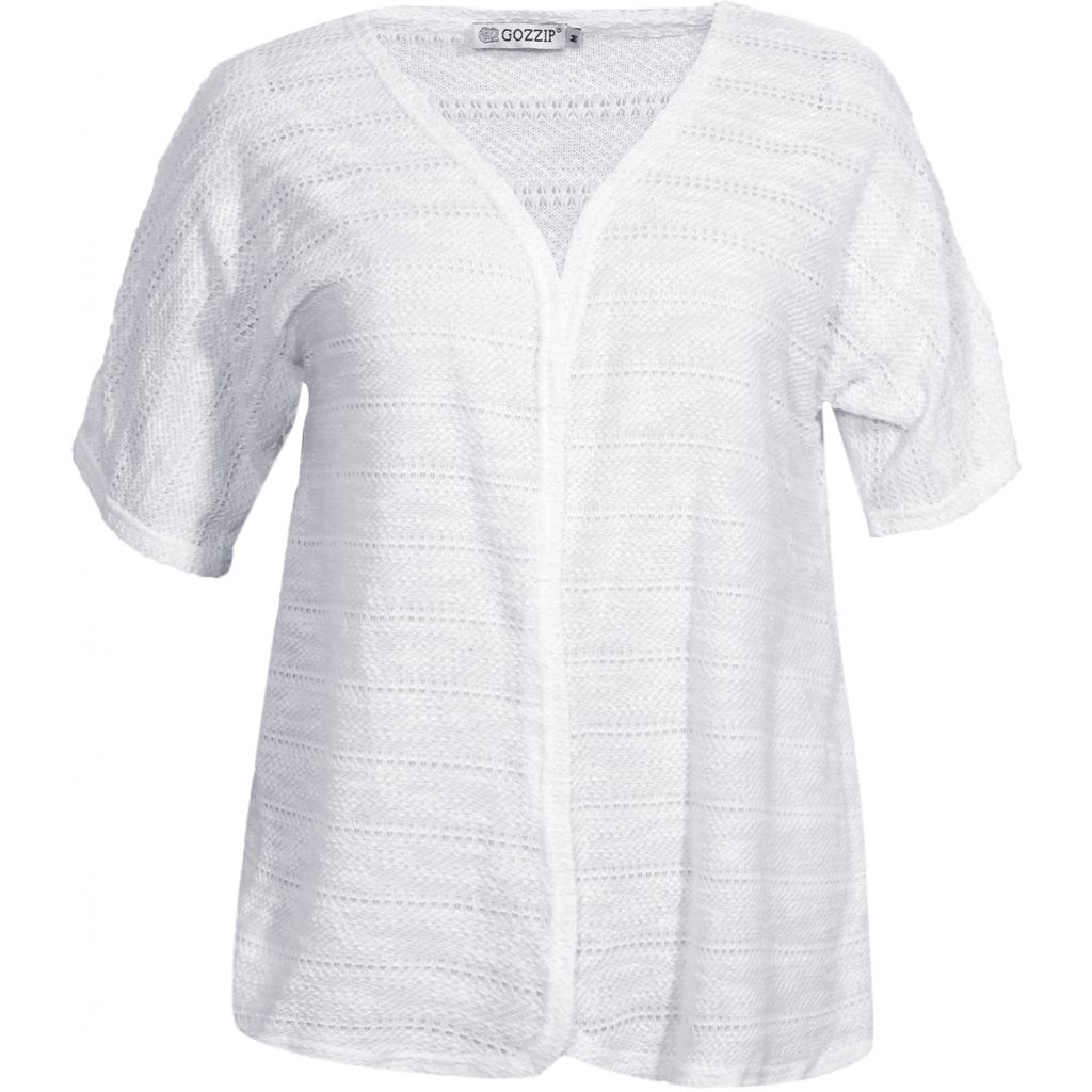 Flot åbenstående cardigan med korte ærmer. Cardiganen er i et tyndt og blødt hulmønstret materiale, der er meget behagelig at have på. Cardiganen er længere bagpå end foran.
