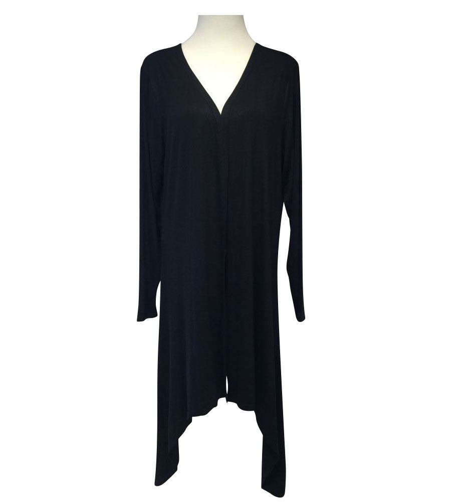 Smart sort cardigan fra OneMore med lange ærmer. Cardiganen er lavet i en let viskose. Som en pæn effekt har cardiganen dryp i begge sider. Denne cardigan er perfekt til både hverdag og fest, hvad enten du bruger den over en top og et par jeans eller over en pæn kjole.