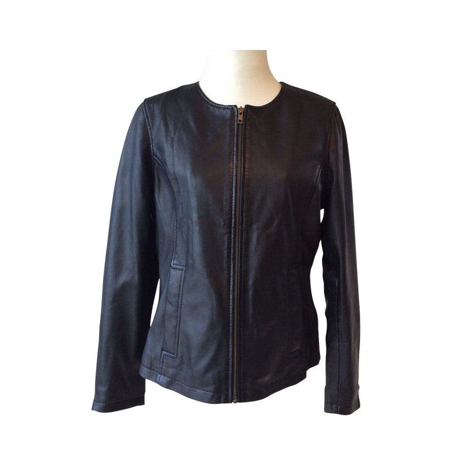 Utrolig lækker sort læderjakke i meget blødt skind. Læderjakken er med lynlås foran og nederst på ærmerne. Jakken er med rundhals og har gode lommer foran i begge sider.