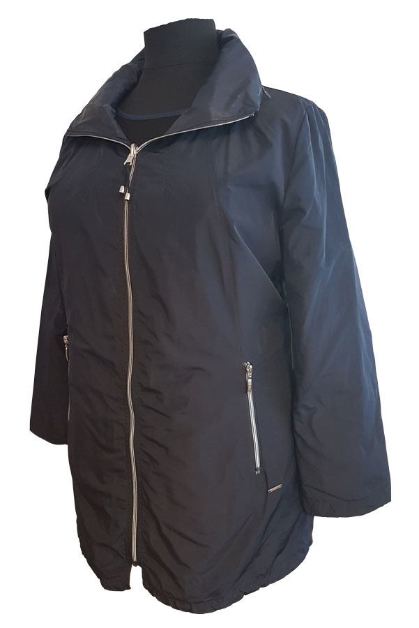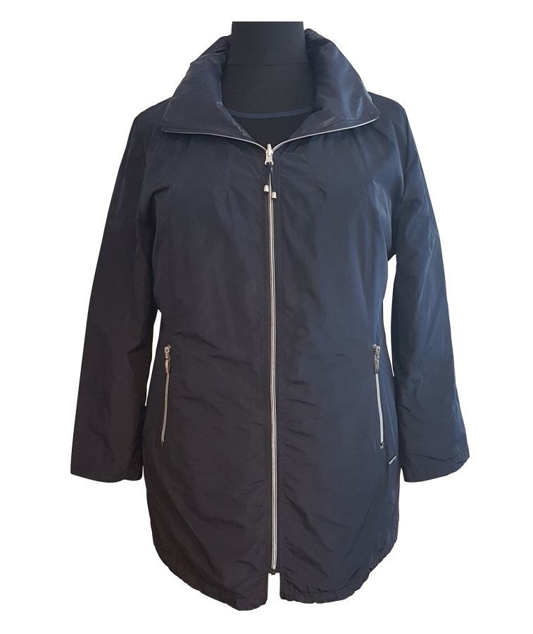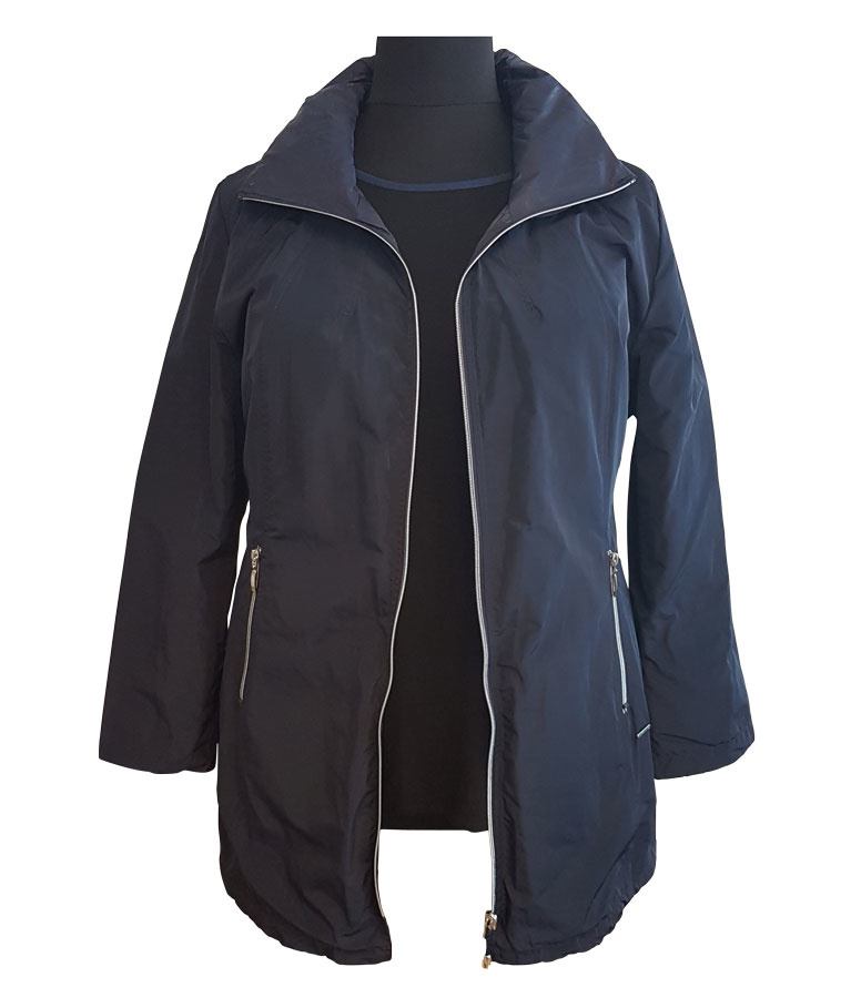 Flot navy blå 2 i 1 jakke. Dette er en vendbar jakke, hvor du kan vælge side alt afhængig af dit humør. Den ”traditionelle” yderside er en elegant navy blå med lynlåslommer.