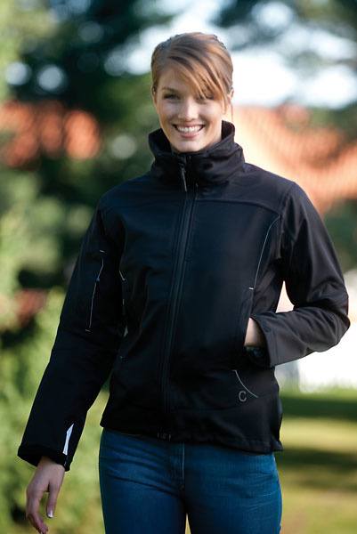 En smart og super lækker softshell jakke til damer. Softshell jakken fås i farverne sort og rød. Soft shell jakken er med hvide kontrast syninger og med YKK lynlås.