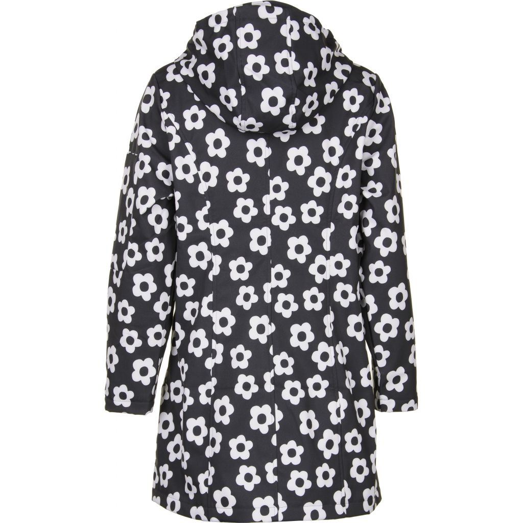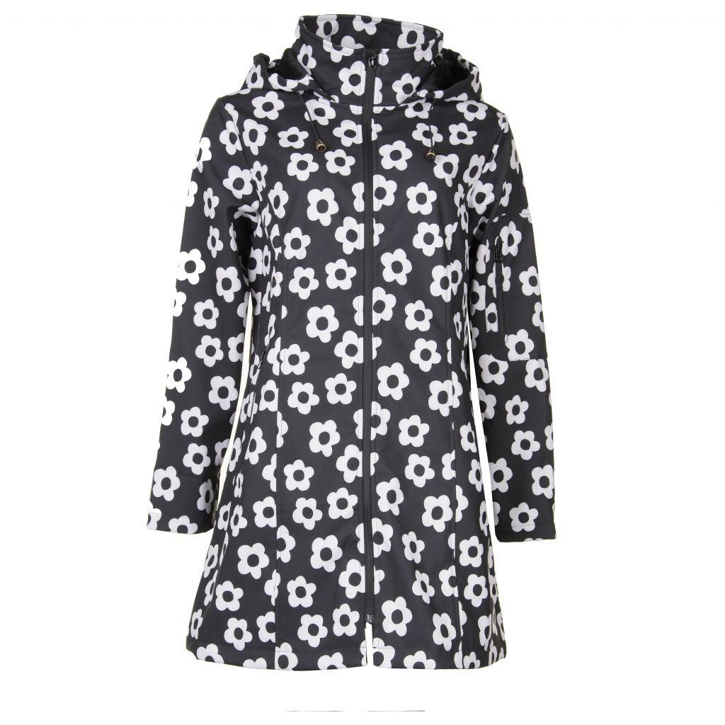 Super flot softshell jakke med print fra Studio. Jakken er sort som bundfarve med flot hvidt print af blomster.