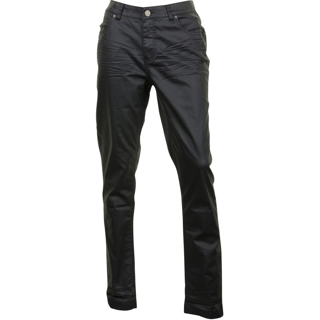 Super smarte coatede jeans fra Studio. Gode til vinterens mange fester, for de har et eksklusivt look. Der er lynlås og en knap foran samt bæltestropper i taljen. Buksen har to gode lommer foran og wrinkle effekt øverst på lårene. Bagpå er der to basis baglommer.