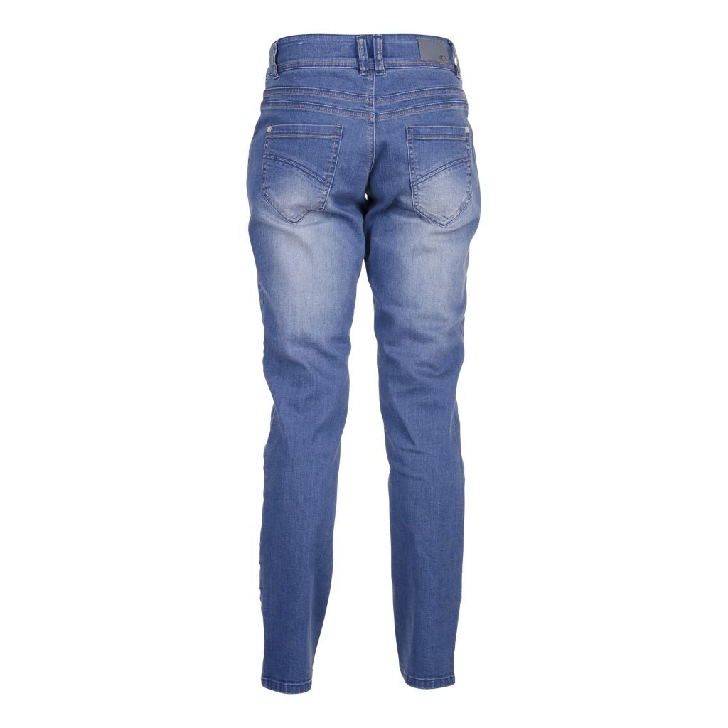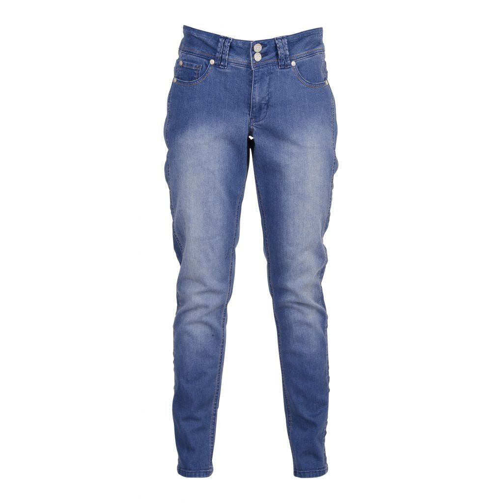 Smarte Veto jeans i lys denim med høj taljen. Der er to knapper i taljen, der sikrer, at bukserne sidder flot også på en kurvet kvinde. Der er sidelommer og baglommer. Rundt i taljen er der bæltestropper. Jeansene er i regular fit, der fremhæver dine pæne ben.