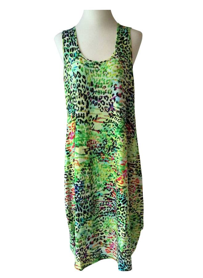 Sød sommerkjole med let balloneffekt. Kjolen er med brede stropper i et smart limegrønt print. Kjolen er i A-facon, så der er god plads til en kurvet krop, men samtidig har den en god detalje nederst, hvor den syes ind og bliver en smule smallere. Der giver en super flot silhuet.