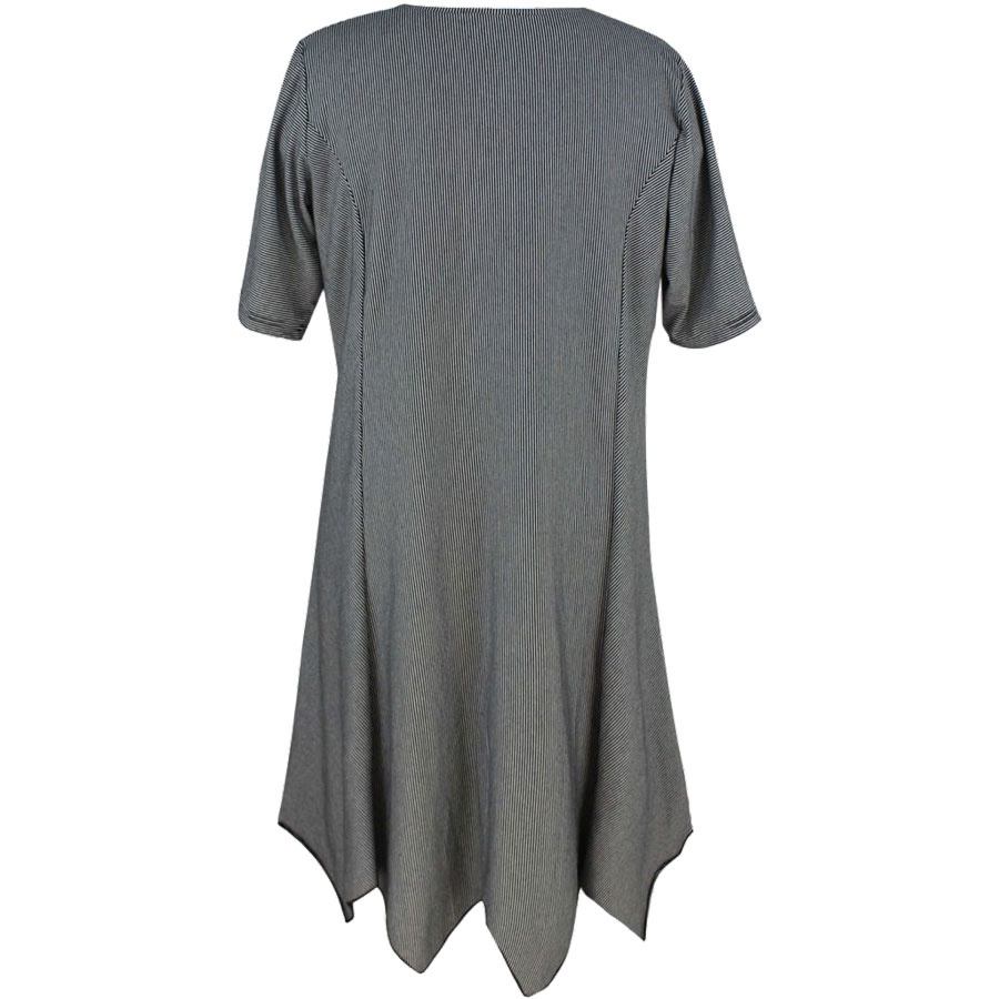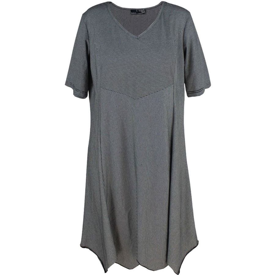 Flot kjole i en flot metervare med tynde striber i sort og en meget lys grå.