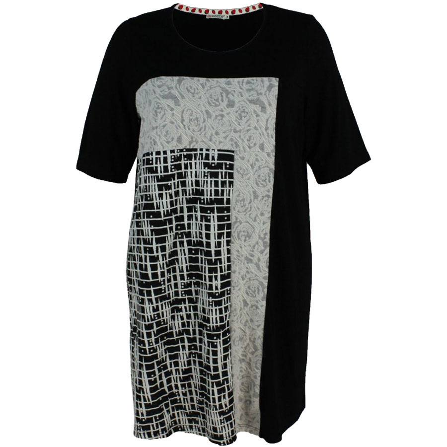 Tunikaen er sort med søde, hvide blonde-detaljer krydret med et indsat stykke sort og hvidt stof, der ligner broderi. En klassisk Gozzip kombination i en lækker kvalitet.
