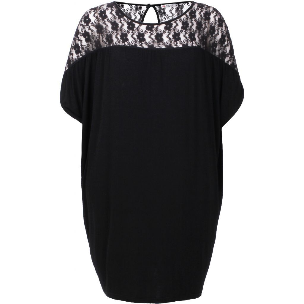 Flot kjole med frisk blonde fra Gozzip. Kjolen er i ensfarvet sort med rund halsudskæring, bagpå er der et keyhole, der lukkes med en lille sort knap. Dette gør, at det er nemt at komme i og af kjolen uden, at den er nedringet.
