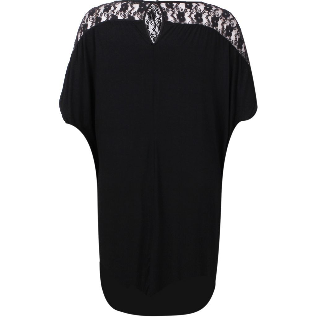 På bærestykket hen over skuldrene og brystet er der kig til huden gennem er pæn sort blomstret blonde.