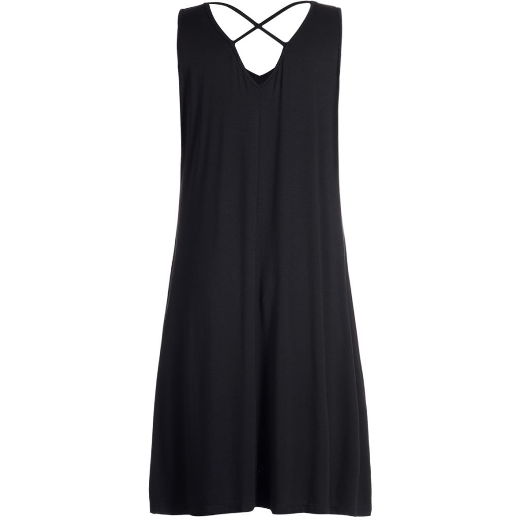 Lækker sort kjole i en super blød viskose med masser af stretch. Kjolen er uden ærmer og syet i A-facon, så den falder flot på en kurvet krop. Ved brystet har kjolen en lille syning i begge sider, som gør, at barmen vises flottere frem, og kjolen ikke bare hænger.