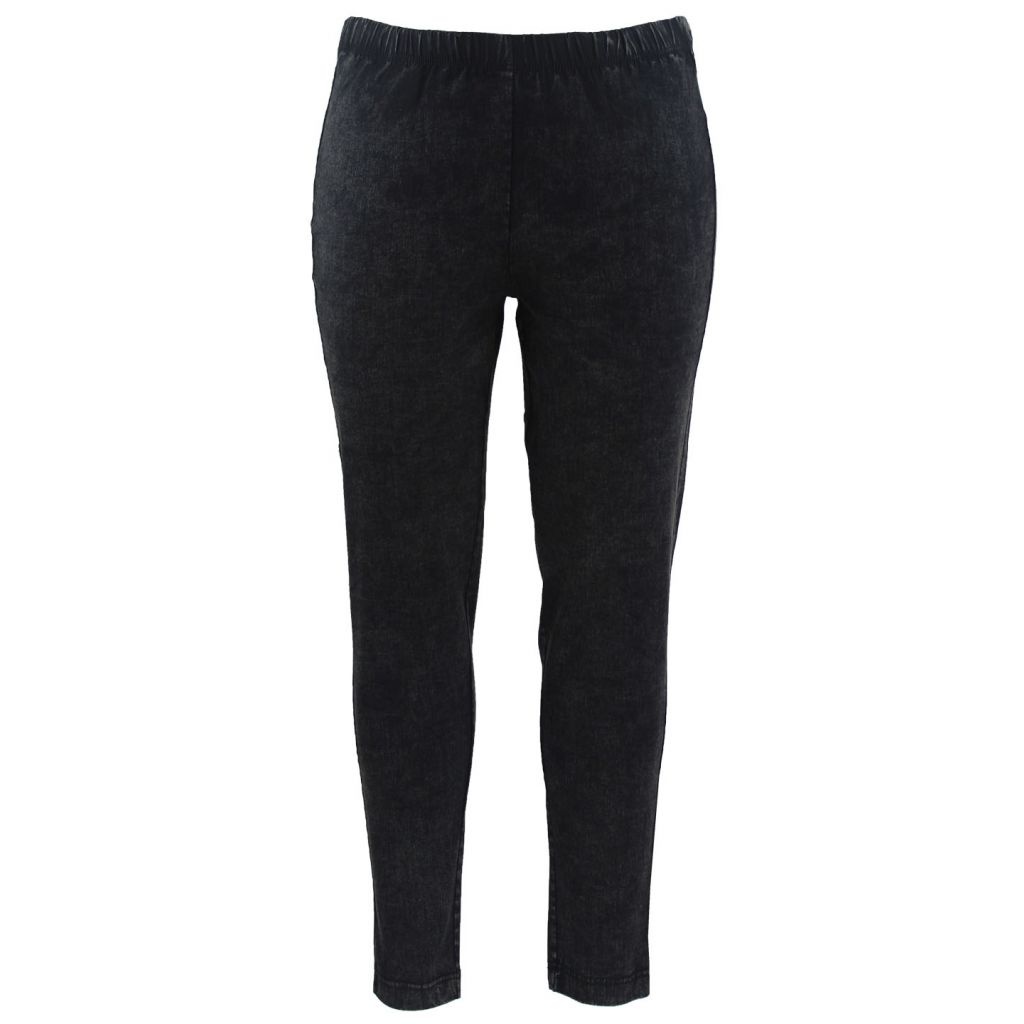 Smarte, behagelige leggins i forvasket sort.. Disse leggins har en god pasform til kvinden med de lidt bredere lår. I linningen er der en bred elastik, som gør dem behagelige at have på.