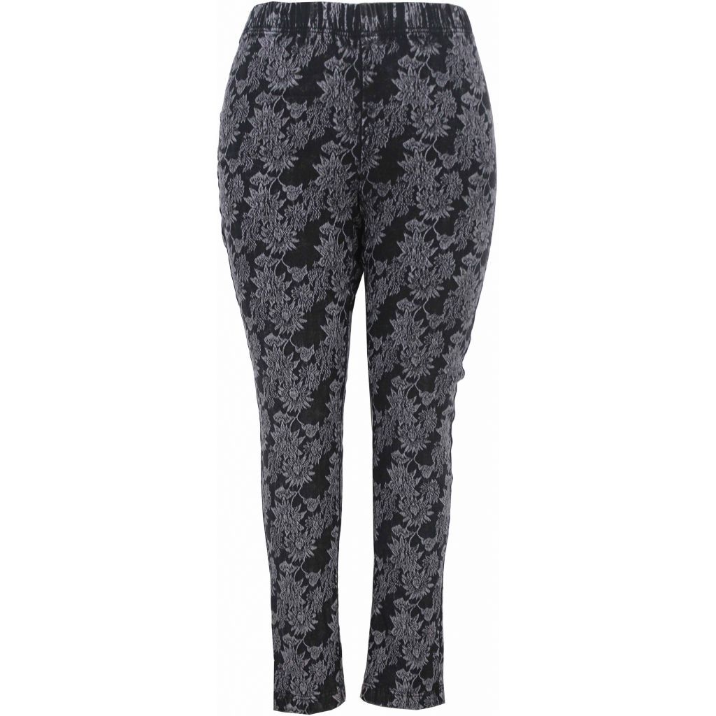 Flotte og meget elastiske leggins fra Gozzip i sort med et gråt blomstret mønster. I taljen er der en bred indsyet elastik, der sikrer dine leggins sidder godt og behageligt på samme tid. Materialet er cold dyed, og det betyder, at der kan være en lille smule forskel fra produkt til produkt, lidt ligesom ved batik. Det er en naturlig del af disse leggins’ unikke look.