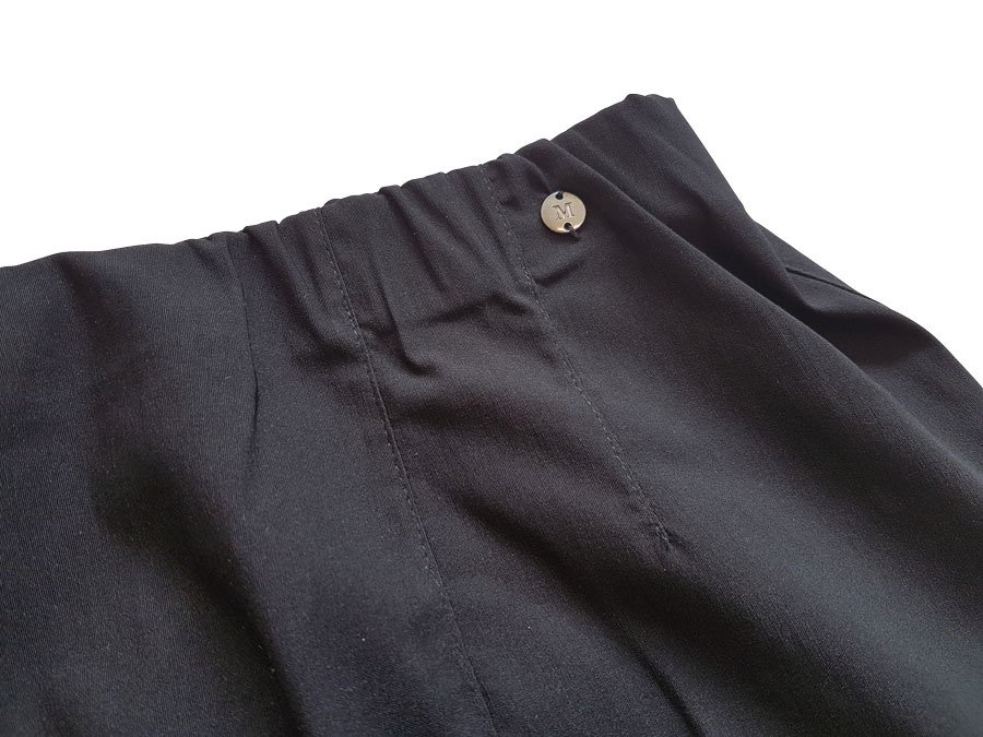 Nederdelen er med en bred indsyet elastik. Foran er der syet stiklinger, som får den nederste del af maven til at syne lidt mindre.