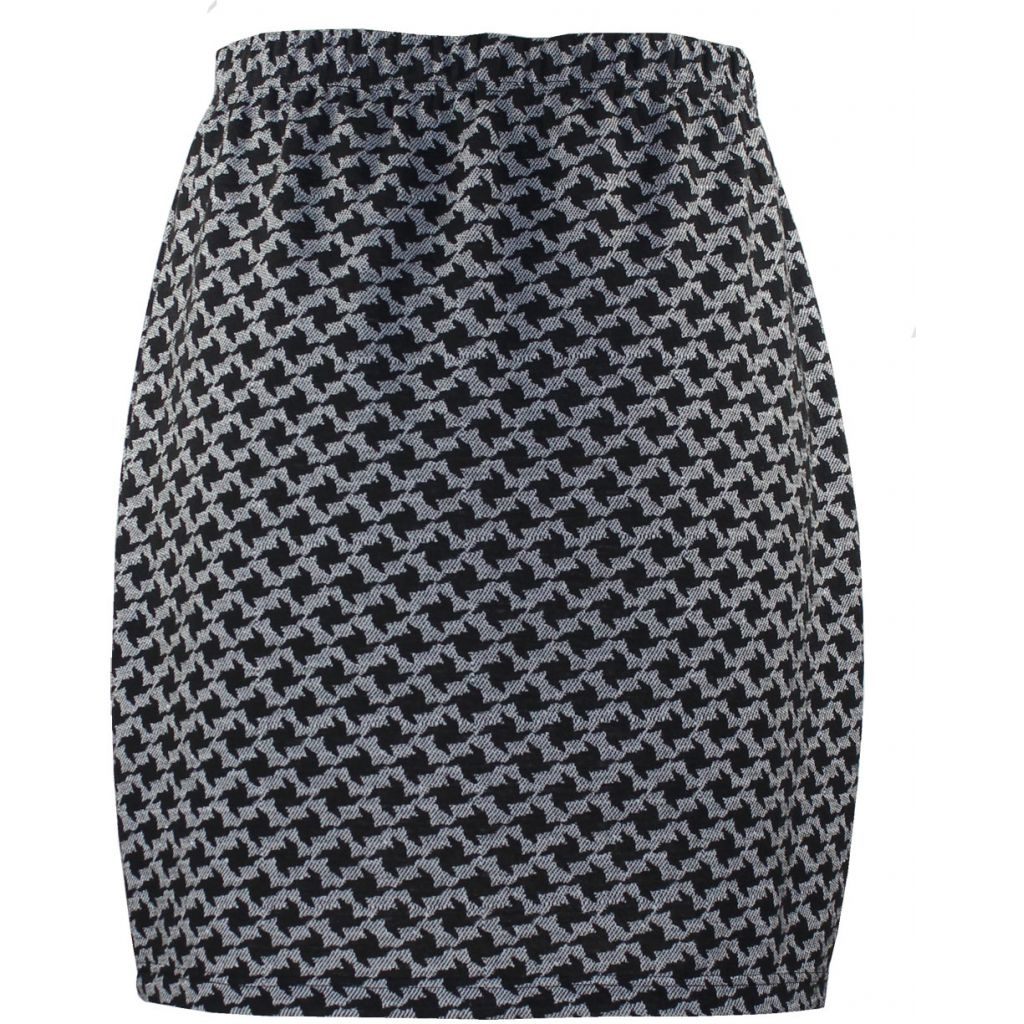 Flot mønstret nederdel fra Gozzip i en virkelig lækker kvalitet. Mønsteret er sort og gråt. Nederdelen falder flot, også på en kvinde med kurver. I linningen er der indsyet en bred elastik, så nederdelen er behagelig at have på.