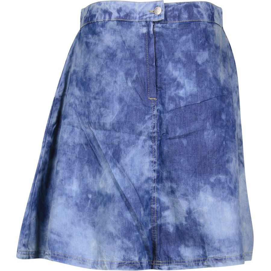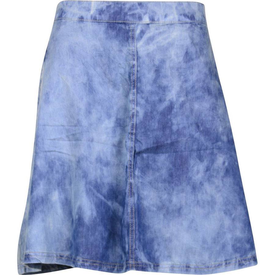 Fed skaternederdel fra Studio med sjove effekter i stoffet. Stoffet er i et tynd jeans-look med farveforskelle lidt a la batiktryk. Nederdelen lukkes bagpå med knap og lynlås. På fronten er der gode sidelommer. Nederdelen slutter lige under knæet.