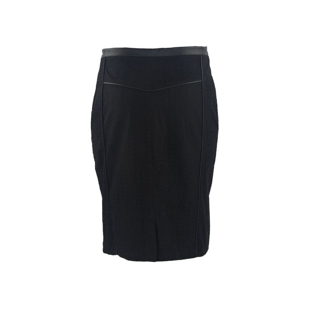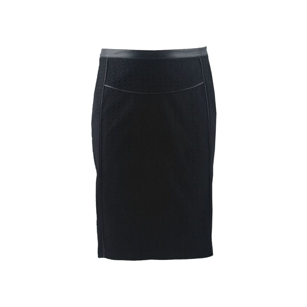 Lækker, sort mønstret nederdel med detaljer i faux læder. Nederdelen er med læderlook i taljen og i tynde bånd både foran og bagpå. Nederdelen lukkes i siden med en lynlås.