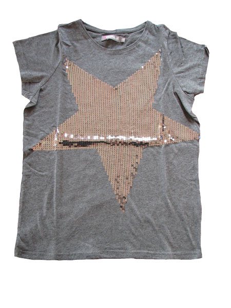 Smart T-shirt med palietter fra XGirlz. T-shirten er blød og tynd og palietterne er formet som en stor glitrende stjerne på fronten.