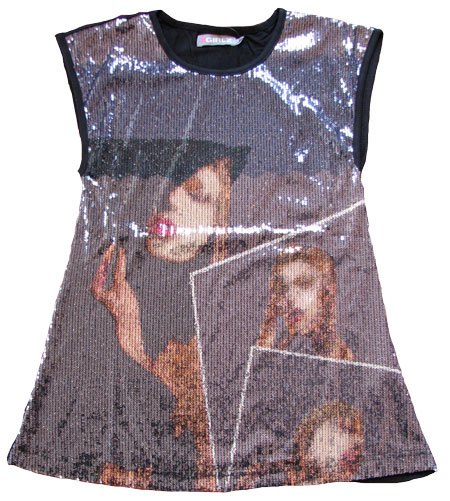 Super flot top til piger fra XGirlz. Forsiden af toppen er dækket med glimtende palietter og har motiv af en kvinde. Toppen har store ærmehuller, der gør det behageligt og luftigt at have toppen på. På bagsiden er toppen helt sort og uden palietter. Den er blød og tynd og perfekt til en dag hvor man har brug for at se ekstra smart og glimtende ud.