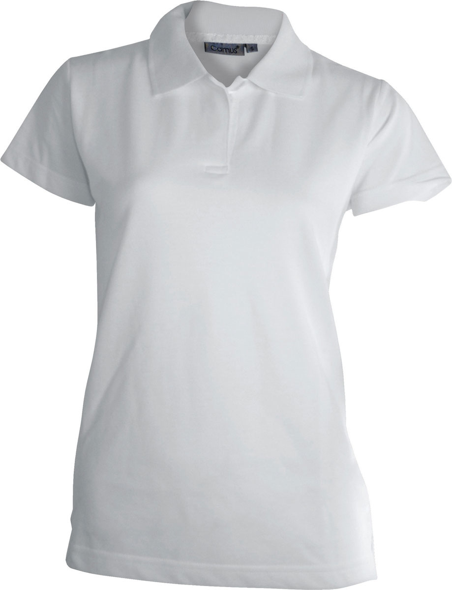 Forneden på polo-shirten er der i begge sider en lille slids som indvendig er forsynet med satinbånd. Polo-shirten forbliver klassisk, men har et moderne feminint snit.