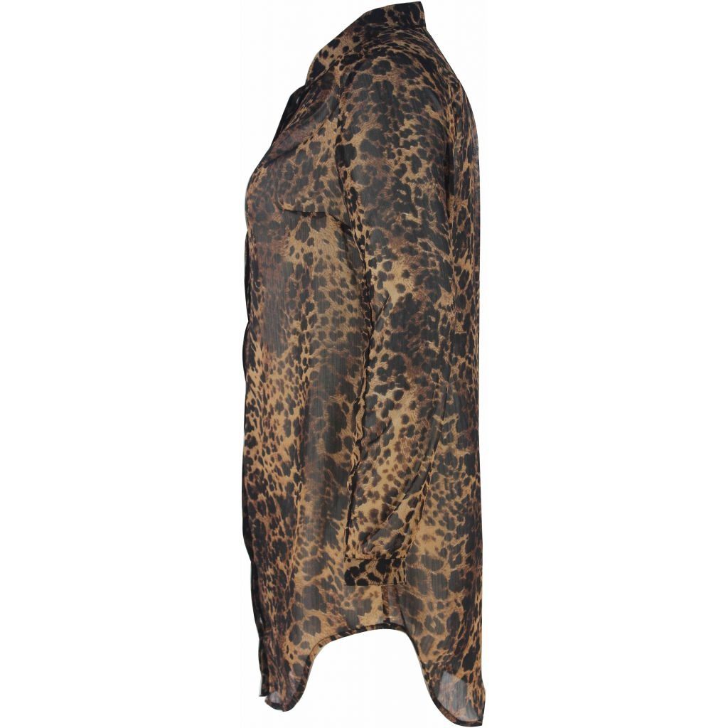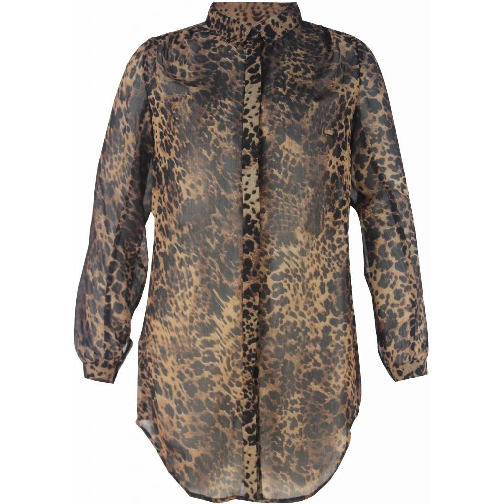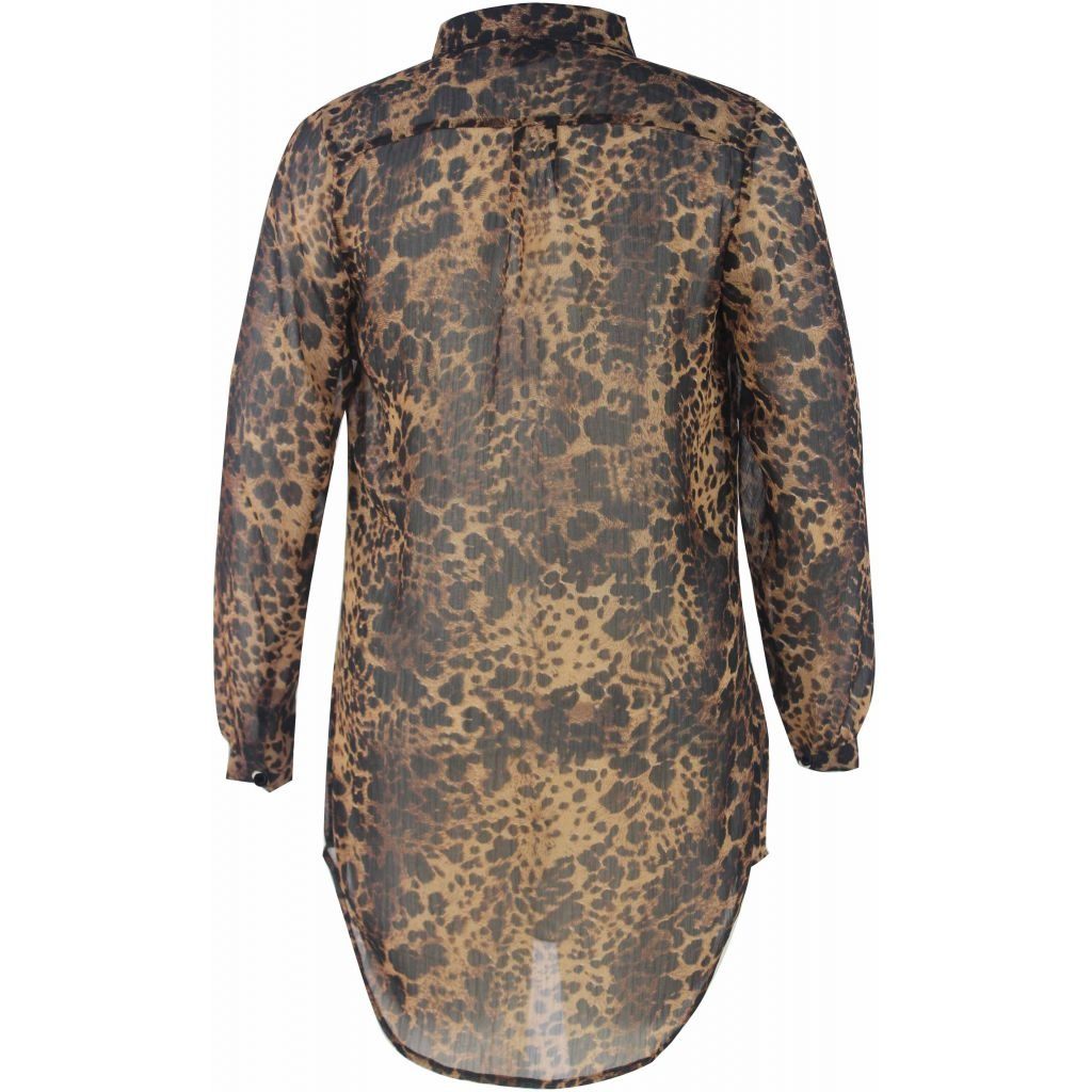 Lækker lang skjorte i flot leopard print. Skjorten er med lange ærmer og er lettere gennemsigtig. Skjorten har en klassisk krave og syninger ved brystet.