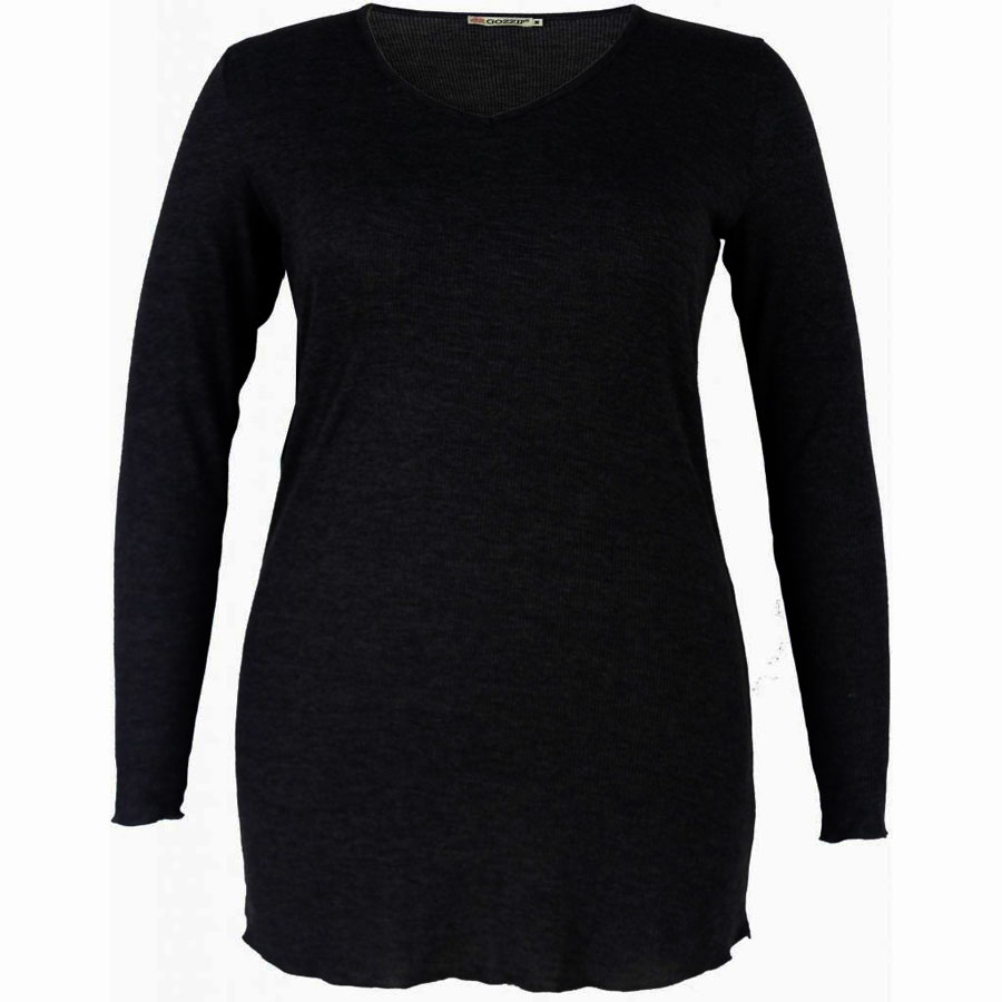 Gozzip langærmet T-shirt m. stræk (Sort)