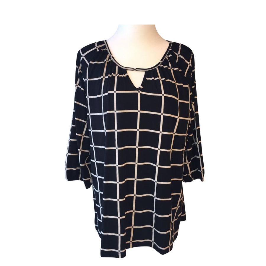 Lækker Handberg T-shirt med 3/4 lange raglan ærmer i A-facon. T-shirten er med en rynket, rund halsudskæring med en stolpe hen over et dråbeformet hul.