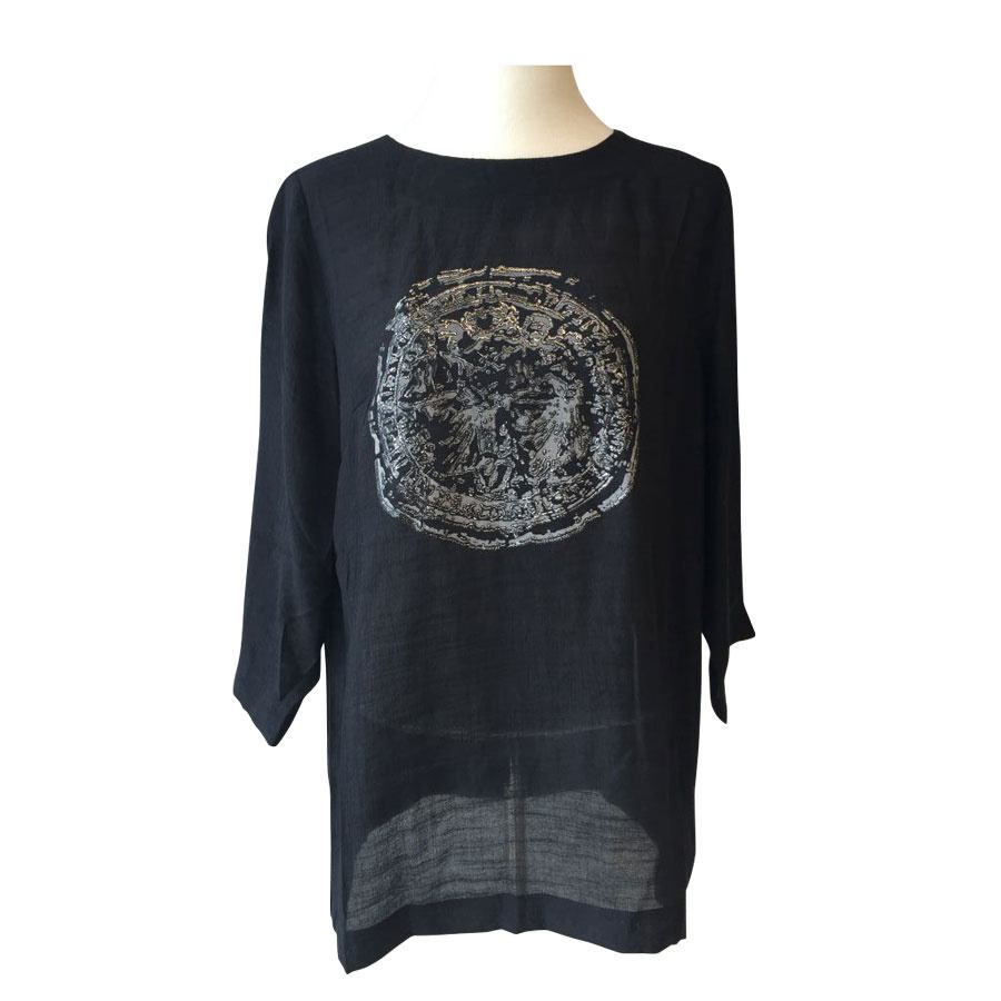 Flot, sort T-shirt med ¾ ærmer. På fronten af T-shirten er der et print i grå og sølv.