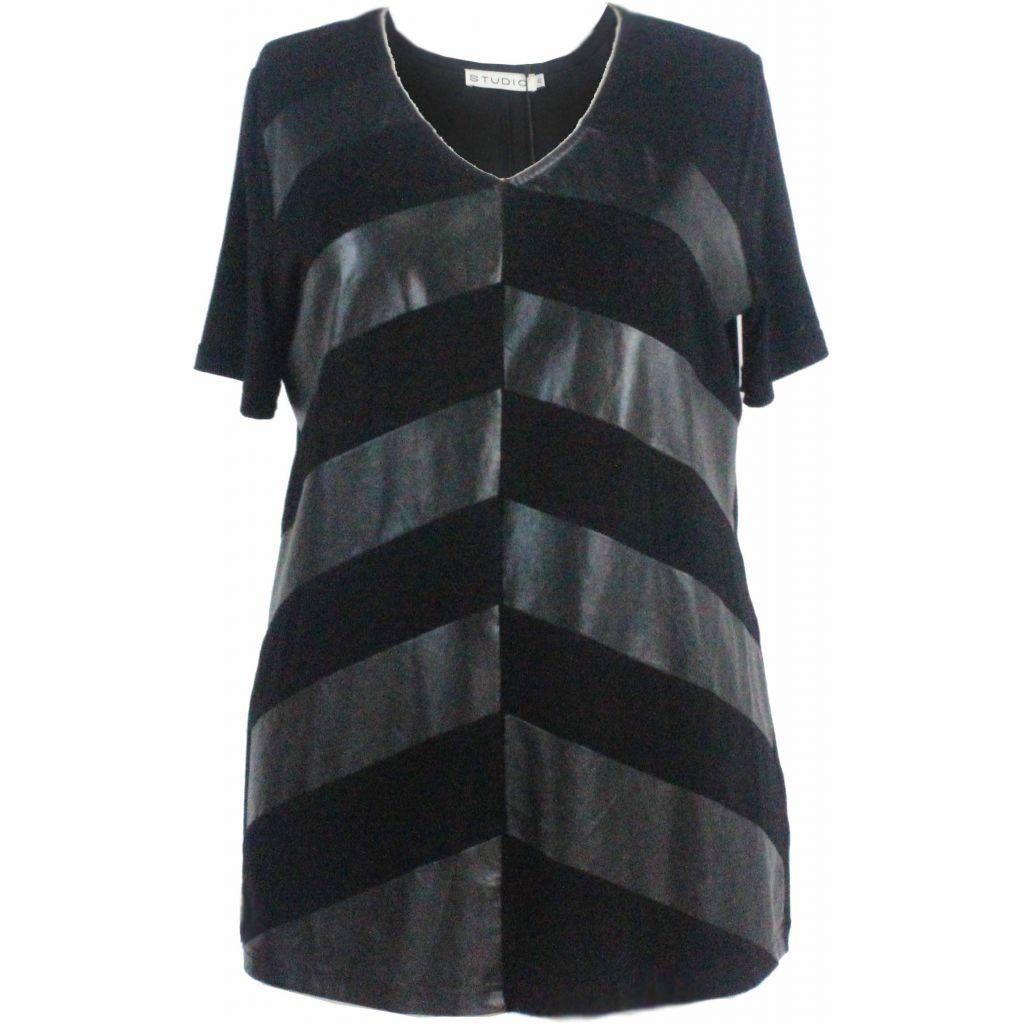 Lækker og anderledes t-shirt med korte ærmer. T-shirten er med v-hals og har ensfarvet ryg og ærmer.