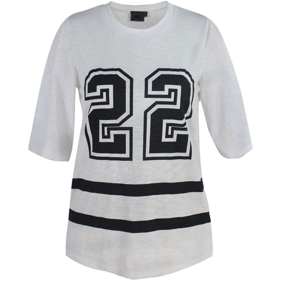 På fronten er trykt tallet 22 samt to sorte vandrette streger, som giver T-shirten et sporty udtryk. Smart sammen med et par farverige leggins eller et par shorts.