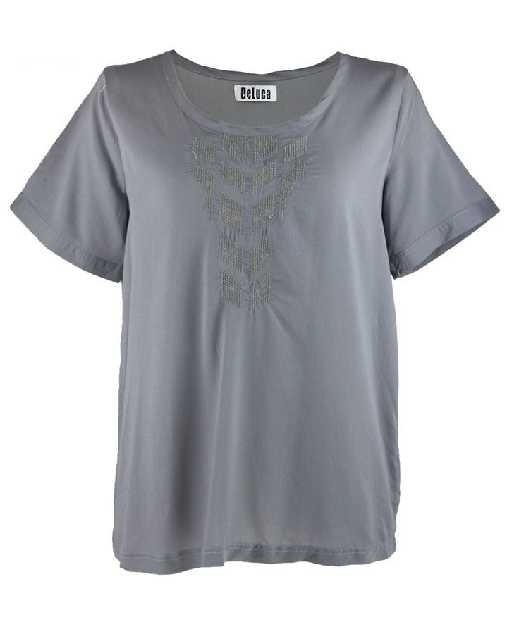 DELUCA top med korte ærmer. Super fin grå top med flot broderi foran.