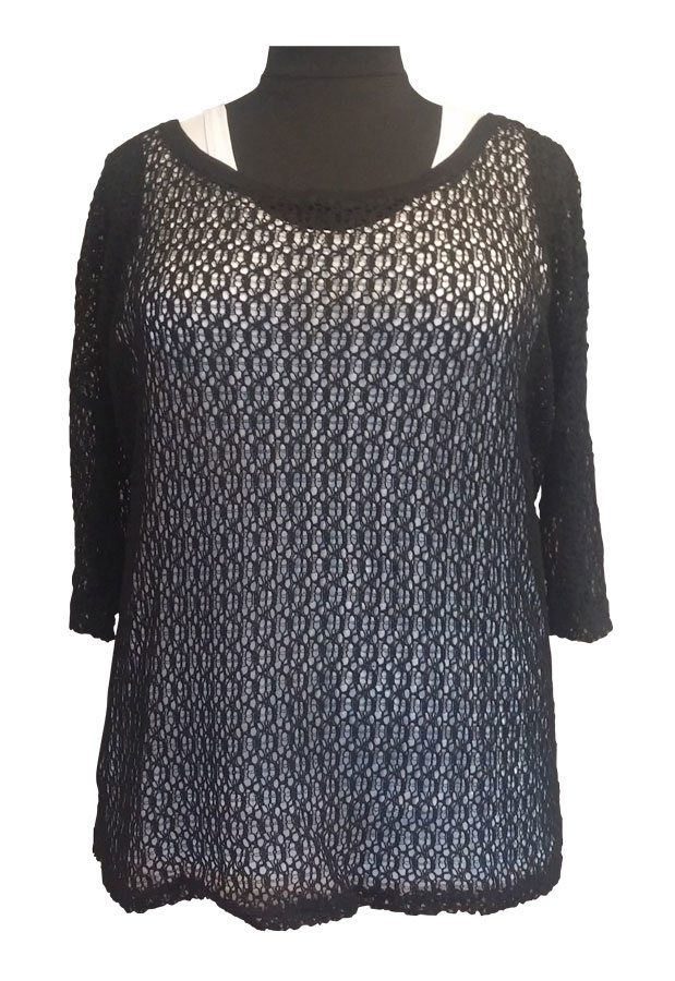 Flot oversize top fra Veto i en løs hulmønstret strik med en god længde. Toppen har lange ærmer og en stor rund hals med en lille ribkant.