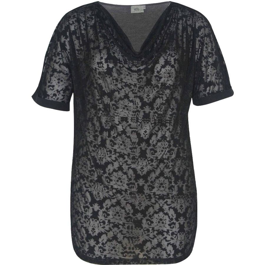Flot lang top/T-shirt med vandfald og korte ærmer. Ærmerne har en lille sort ombukket løs ribkant.