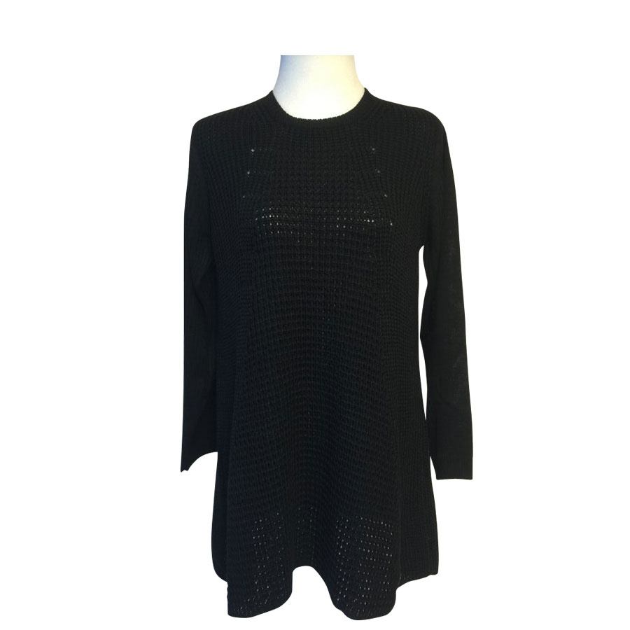 Smart strik tunika i A-facon. Tunikaen er med rund hals og bagpå er der en kort lynlås ved halsudskæringen. Tunikaen er med lange ærmer i en tæt strik. Fronten og ryggen er strikket med større masker.