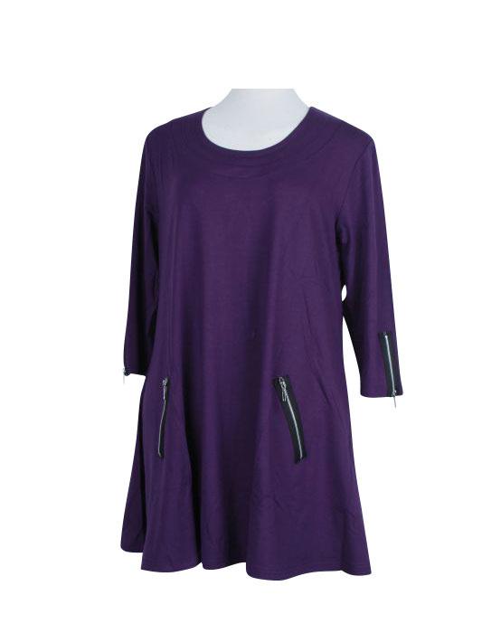 Modellen har en rund halsudskæring med en pæn bred kant. Tunikaen er med ¾ ærmer, nederst på begge ærmer er der en sølv pyntelynlås.