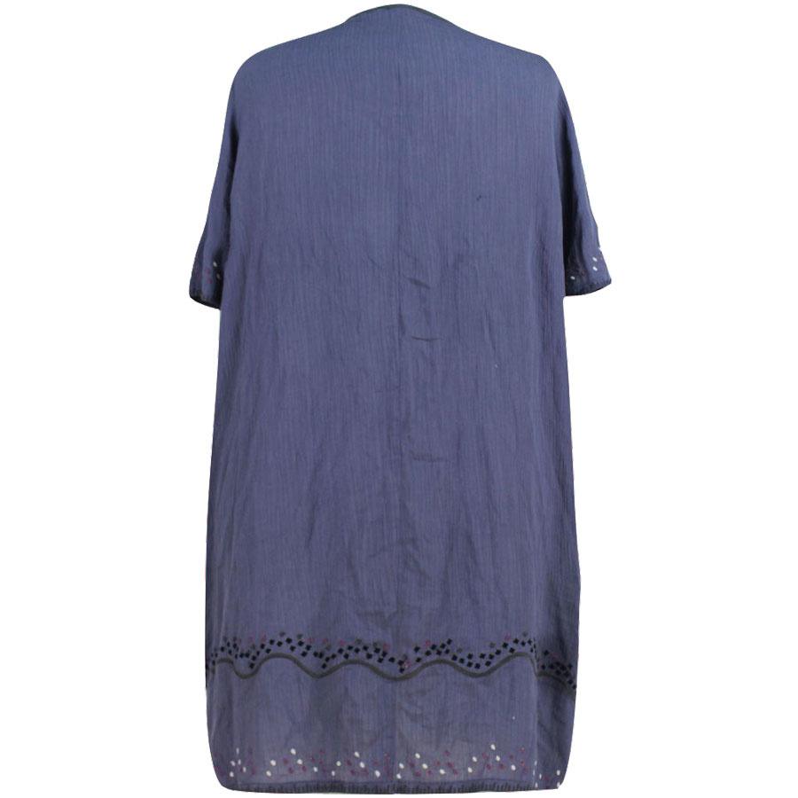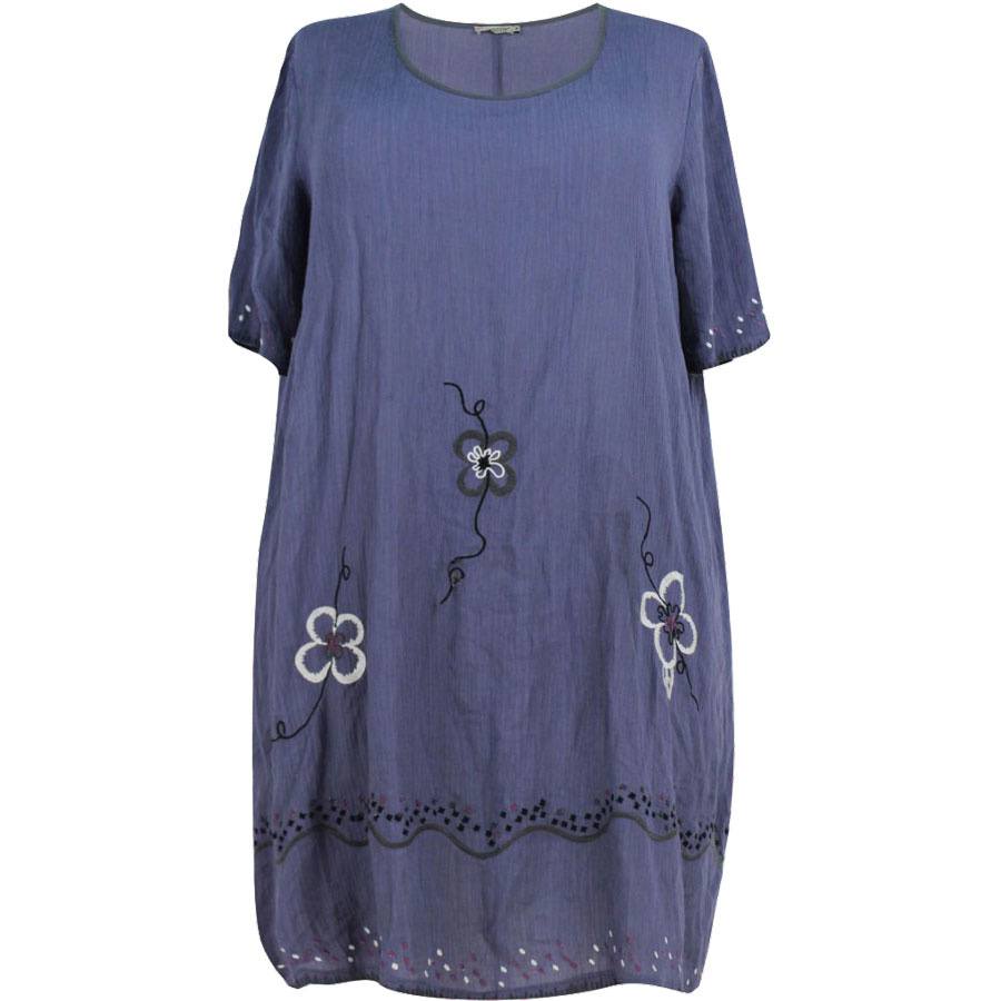 Smuk mørklilla tunika/kjole med korte ærmer. Tunikaen er med u-hals og med mange flotte broderier. På fronten er der broderet blomster og andre fine detaljer. Nederst på kjolen og ærmerne er der broderet små prikker i lyslilla og hvid. Sød og klassisk tunika fra Gozzip.