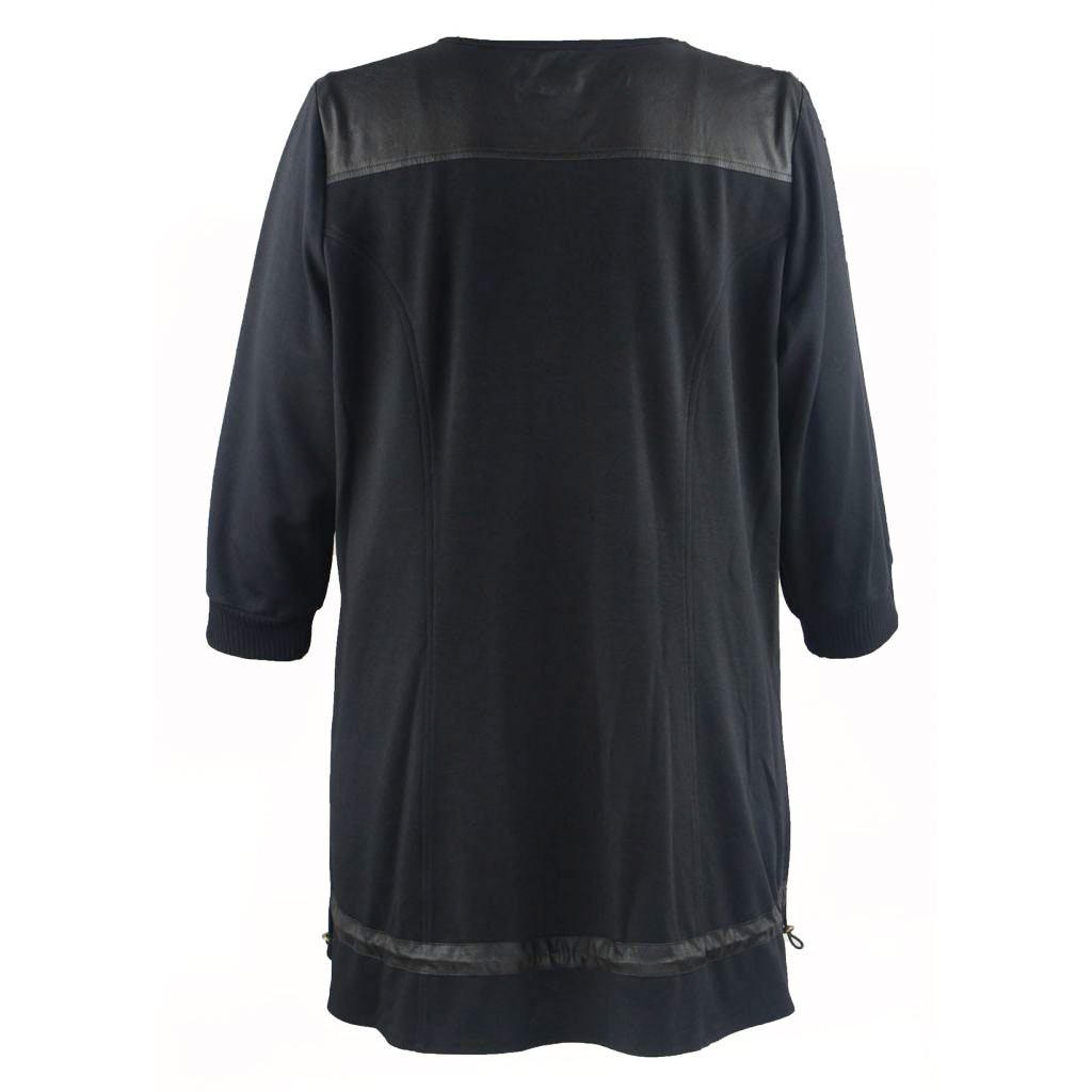Tunikaen har mange fantastiske detaljer fx 2 lommer som lukkes med lynlås. På fronten er der syet læderlook ind flere steder, dette giver en meget eksklusiv effekt. Der er også leget med spillet mellem sort og limegrøn med limegrønne effekter både på skuldrene og under lommerne.