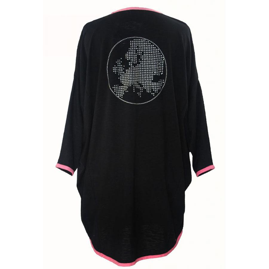 Tunikaen er en velkendt og meget populær model fra Näis med mange lækre detaljer bl.a. et ”verdenskort” på ryggen, der lavet i nitter. Tunikaen har kantbånd både i den runde hals og i ¾ ærmerne i en kontrastfarve rose.